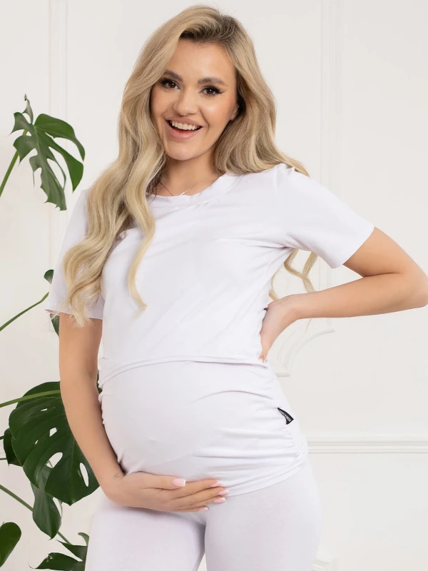 Nosečniška majica Emma ima na obeh straneh trebuščka gube, ki se bodo prilagajale rastočemu trebuščku in spreminjajočemu se telesu. Zgornji del nosečniške majice ima všit poseben vložek, ki se zaviha navzgor, zahvaljujoč kateremu lahko svojega dojenčka enostavno in učinkovito nahranite. Nosečniška majica se bo prilegala vaši postavi in zagotavljala udobje med nosečnostjo in kasneje med dojenjem.