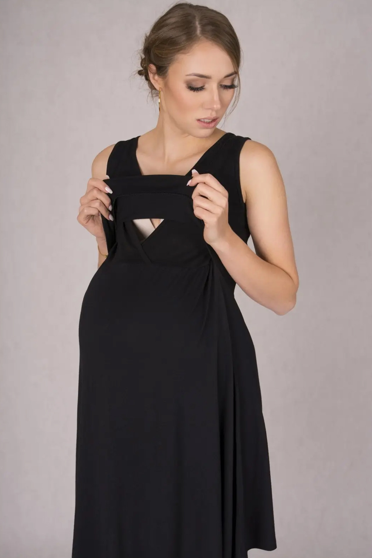 Lahkotna poletna nosečniška obleka za popolno sproščenost in eleganten izgled za vsak dan ali za zabavo. Primerna je za nošenje skozi celotno obdobje nosečnosti in v času dojenja, saj vam omogoča diskretno in enostavno dojenje kjerkoli.