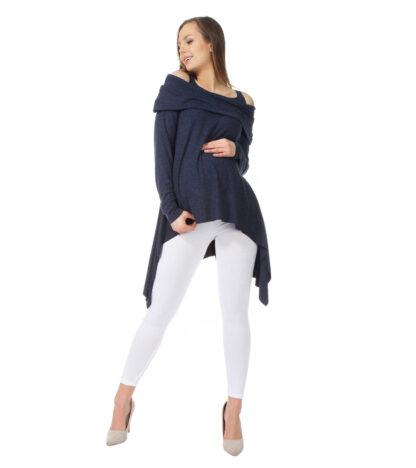 Tunika je narejena iz blaga na otip z dodatkom akrila. Nosite jo lahko tako s klasičnimi nosečniškimi hlačami kot z ultra udobnimi pajkicami.