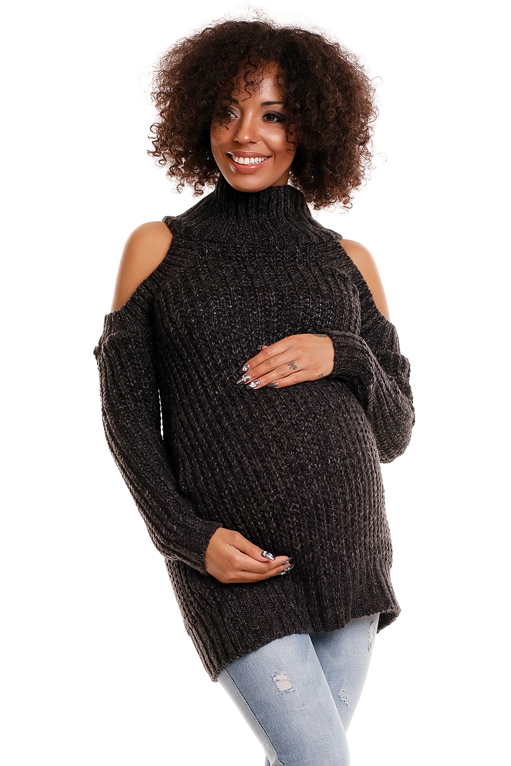Pleten pulover atraktivnega videza. Gola sexy ramena.