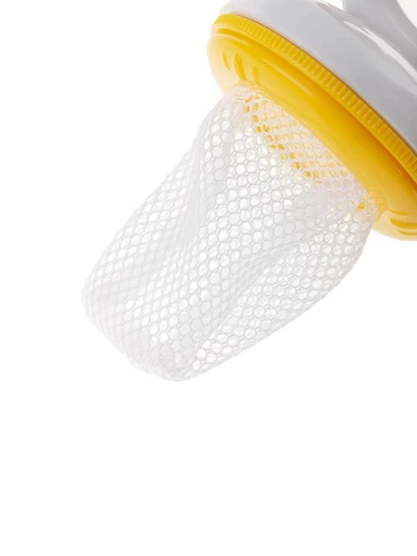 Mrežasto grizalo se uporablja za varno postrežbo ne le svežega sadja, ampak tudi zelenjave, sira in piškotov. Še posebej uporabno pri prehodu na uživanje trdnih obrokov. Odpravlja nevarnost zadušitve z nepopolno prežvečenimi kosi hrane. Popoln za otroške ročice. Popoln za sprehod ali potovanje. Komplet vsebuje pokrovček za zaščito mrežice pred umazanijo. Lahko se uporablja tudi kot grizalo med izraščanjem zobkov. Enostaven za pranje. Priložena rezervna nadomestna mreža. Izdelek je popolnoma brez bisfenola A (0% BPA).